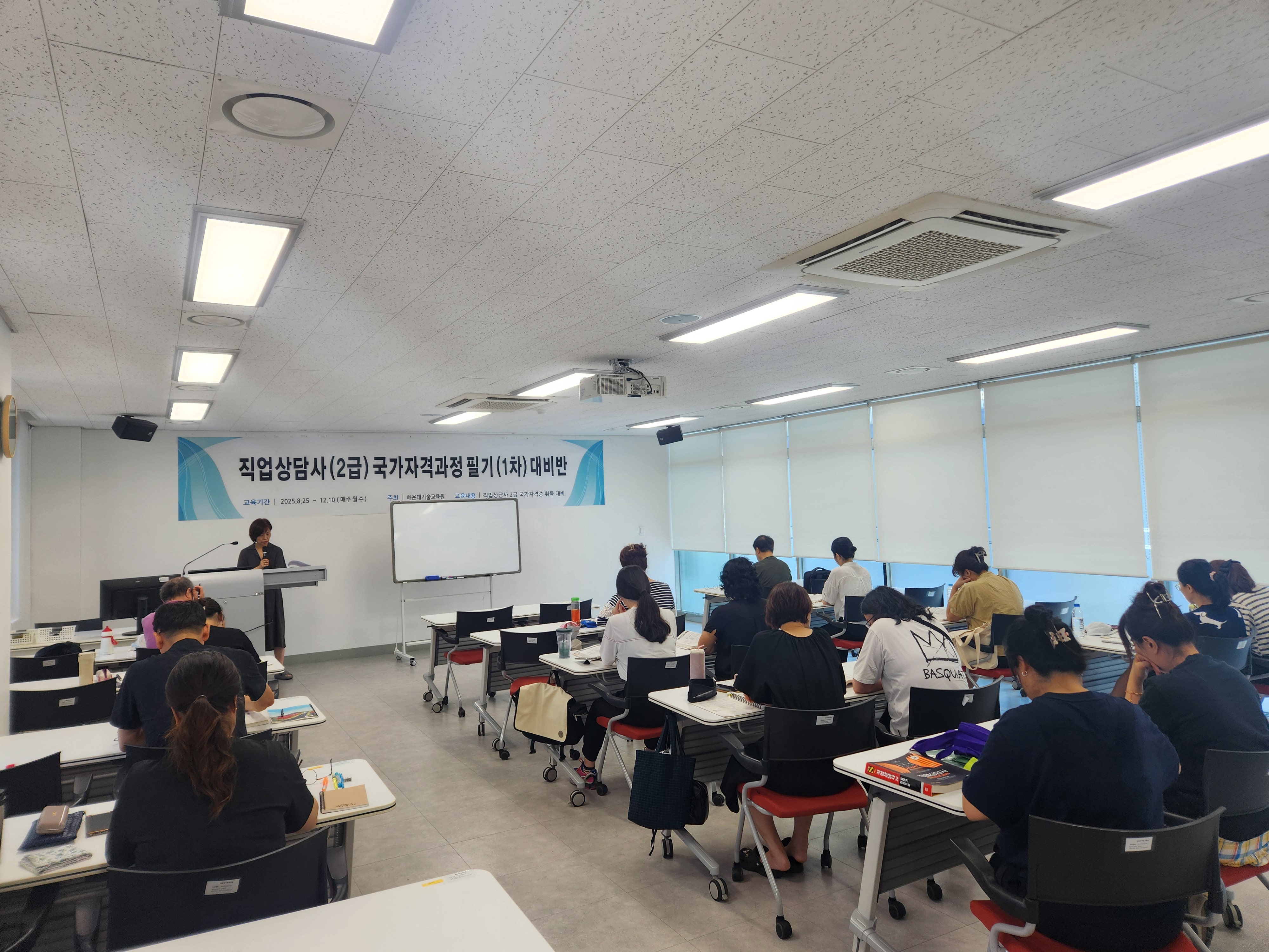 8.25~12.10까지 직업상담사 2급 국가자격과정 필기(1차) 대비반을 진행 하였습니다. 무더운 8월에 시작하여 추운 겨울에 수업이 끝났습니다. 긴 시간동안 노력하신 수강생 분들에게 시험 합격이라는 좋은 결과가 함께 하길 기원하겠습니다.