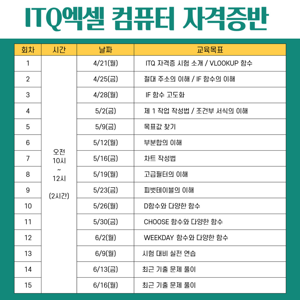ITQ엑셀 컴퓨터 자격증반
